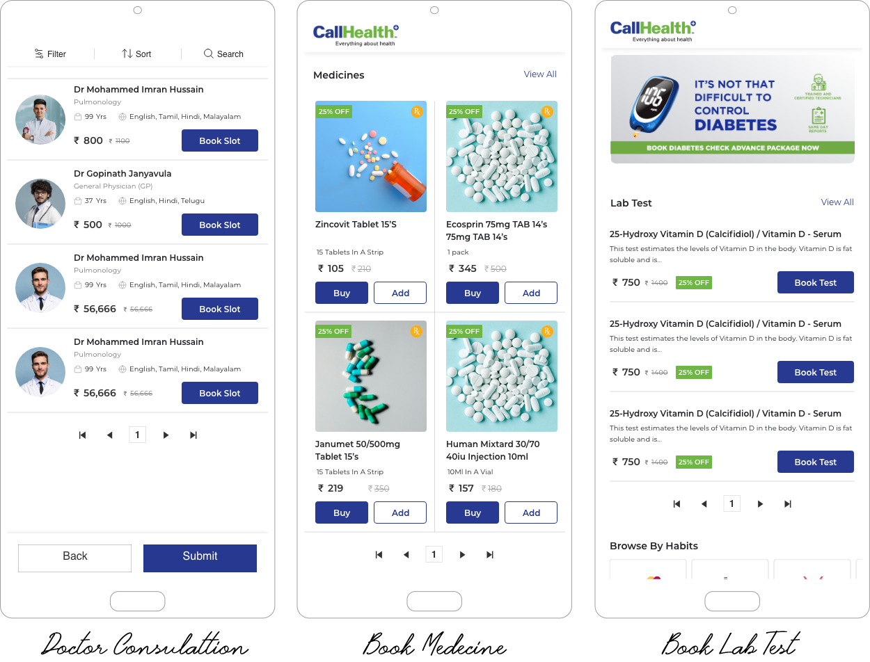 We crafted a seamless native app for an online healthcare service with over 20 lakh active customers, offering doctor consultations, medicines, nursing, bedside assistance, lab tests, physiotherapy, and more. Designed with a user-first approach, the app simplifies booking services on the go, ensuring intuitive navigation, clear service categorisation, and personalised experiences. Every interaction was optimised for accessibility and ease, enabling users to quickly find, book, and manage healthcare services with confidence and convenience.