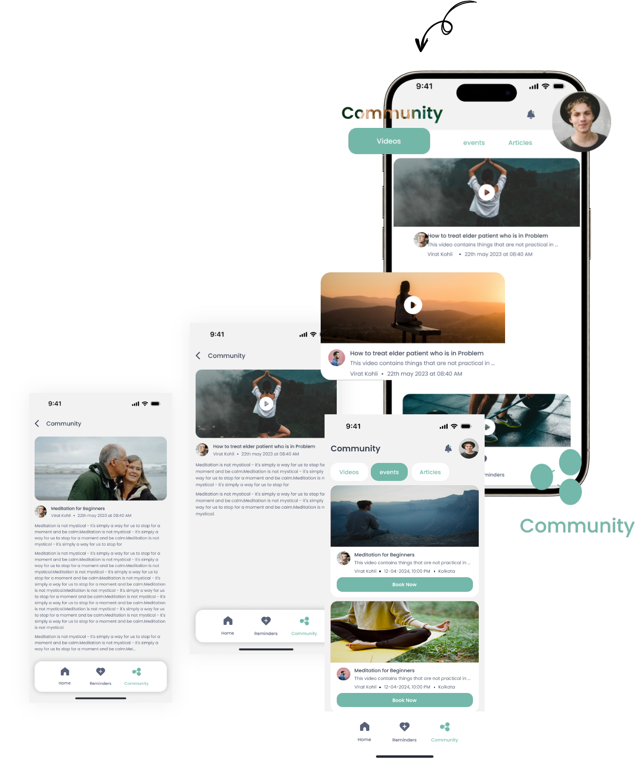 The customer interface was thoughtfully designed for senior users, prioritising ease of use and accessibility. Larger widgets enhance usability, while critical features like emergency assistance are prominently placed for clarity. key functions—book service, contact support, and manage fhm—are positioned in easily tappable areas, ensuring seamless navigation. Daily-use features like community and reminders are readily accessible, with the community page offering an engaging space for seniors to share experiences and stay active through reading and posting.
